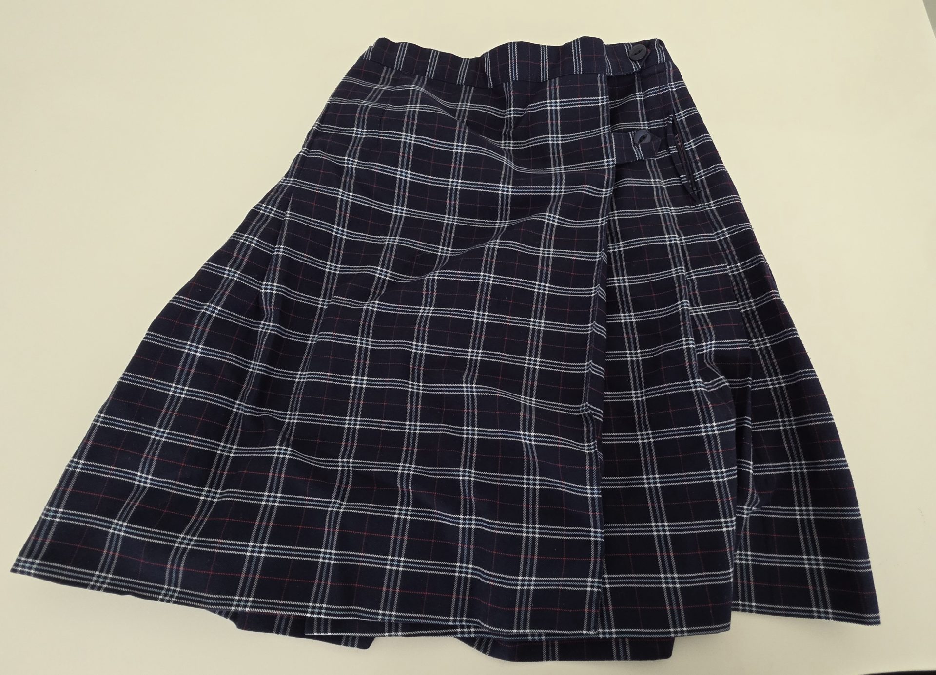 This preloved Senior Size 12 Skirt is still in good condition with buttons and zippers in tact. The hem has come loose which can mended with hand stitching.